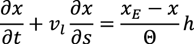где Θ – характерное время релаксации, x – неравновесная массовая концентрация газового компонента в жидкой фазе, xE – равновесная массовая концентрация газового компонента в жидкой фазе, t – время, s –координата вдоль оси скважины, измеренная от забоя, vl – скорость нефтяной фазы с растворенным газом,