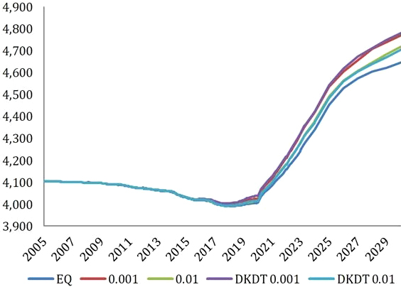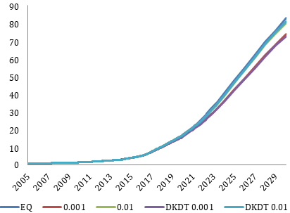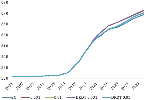 Пример существенного влияния неравновесных процессов на показатели разработки реальной нефтегазоконденсатной залежи представлен в работе (Al-Jenaibi et al., 2019). Рассмотрены те же два метода. Продемонстрировано влияние обратного характерного времени релаксации λ на прогнозные динамики добычи углеводородов и изменения давления.