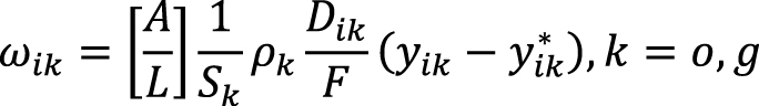 где [A/L] – отношение характерной площади межфазной границы в сеточной ячейке численной модели к характерному расстоянию до межфазной границы (геометрическая характеристика элементарного объема моделирования), Sk – насыщенность фазы k, ρk – мольная плотность фазы k, Dik – коэффициент диффузии компонента i в фазе k, F – коэффициент удельного сопротивления пласта (влияние пористой среды на диффузию), yik – мольная доля компонента i в фазе k, yik* – равновесная доля компонента i в фазе k на границе, рассчитанная в каждом блоке сетки. Конкретный вид зависимости для [A/L] авторы (Nghiem, Sammon, 1997) предлагают выбирать, исходя из направления вытеснения.