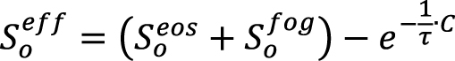 где Soeos – насыщенность жидкой углеводородной фазой, которая вычисляется с помощью стандартной процедуры расчета фазового равновесия (flash) вместе с газонасыщенностью Sg. Предполагается, что насыщенность жидкой фазой Soeos включает две составляющих: подвижный конденсат в форме аэрозоля с насыщенностью Sofog и неподвижный конденсат с насыщенностью Soeff. Насыщенность неподвижным конденсатом Soeff на некотором шаге i формируется следующим образом. Сначала к насыщенности жидкой фазой Soeos, сконденсированной в локальном объеме (ячейке) на этом шаге, добавляется насыщенность аэрозольным конденсатом Sofog, сформированная на предыдущем шаге i-1 в соседнем объеме и привнесенная с потоком газа. Чтобы учесть, что из этого общего количества конденсата некоторая доля успевает осесть за текущий шаг и сформировать Soeff, авторы (Dorhjie et al., 2024) вводят поправку
