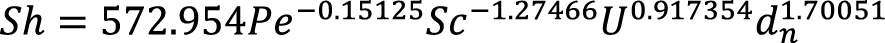 где Pe – число Пекле (отношение между скоростями конвективного и диффузионного переноса массы), Sc – число Шмидта (отношение коэффициента кинематической вязкости к коэффициенту диффузии), U – нормализованная скорость, dn – средний размер зерен (в мкм).