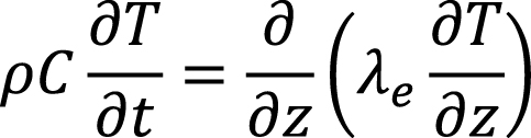 где ρ – плотность морских отложений, C – теплоемкость морских отложений, λe – эффективный коэффициент теплопроводности морских отложений. Глубина расчетного домена Zmax составляет 10 тыс. метров с шагом по вертикали – 1 м. Шаг по времени модели равняется 109 сек. Подробное описание модели дано в работе (Смирнов и др., 2024a).
