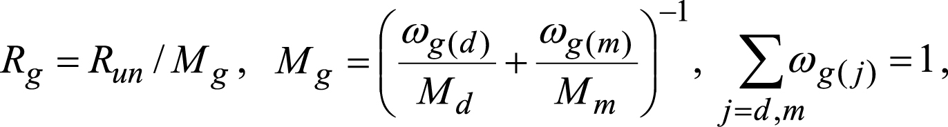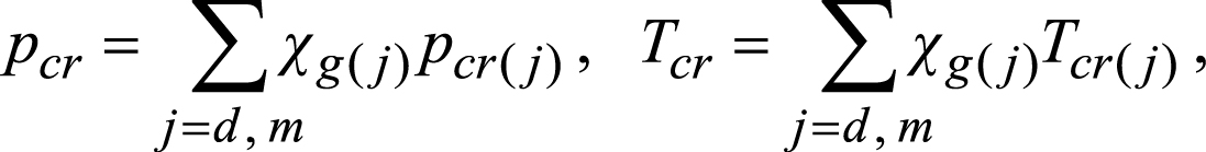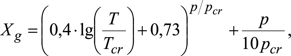 где p – давление, Па; T – температура, К; ρj ( j = sk, g, l, h) – плотность j-ой фазы, кг/м³; Rg – удельная газовая «постоянная» (этот параметр может изменяться в зависимости от состава газовой фазы), Дж/(кг·К); Run – универсальная газовая постоянная, Дж/(моль·К); Md и Mm – молярная масса диоксида углерода и метана, кг/моль; ωg(d) и ωg(m) – массовое содержание CO2 и CH4 в газовой смеси; Tcr и pcr – критическое значение температуры (К) и давления (Па) для газовой фазы; Tcr(d) и Tcr(m) – критическое значение температуры для углекислого газа и метана, К; pcr(d) и pcr(m) – критическое значение давления для CO2 и CH4, Па; χg(d) и χg(m) – мольная доля диоксида углерода и метана в газовой смеси.