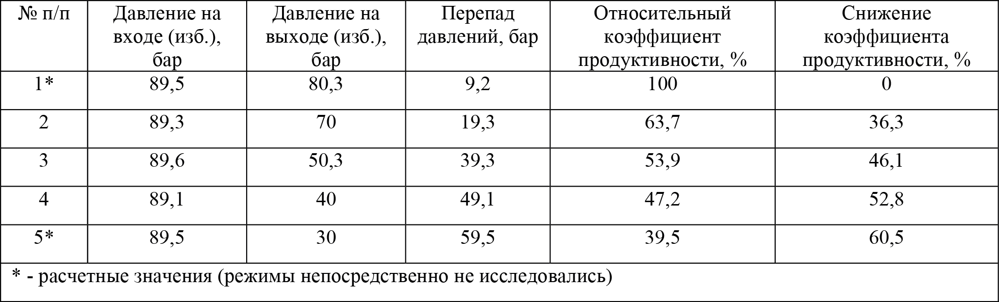 В табл. 2 приведены относительные значения коэффициента продуктивности и величины снижения коэффициента продуктивности по сравнению с однофазным режимом для алевролитов (режим №1 рассчитан по результатам исследований однофазной фильтрации).